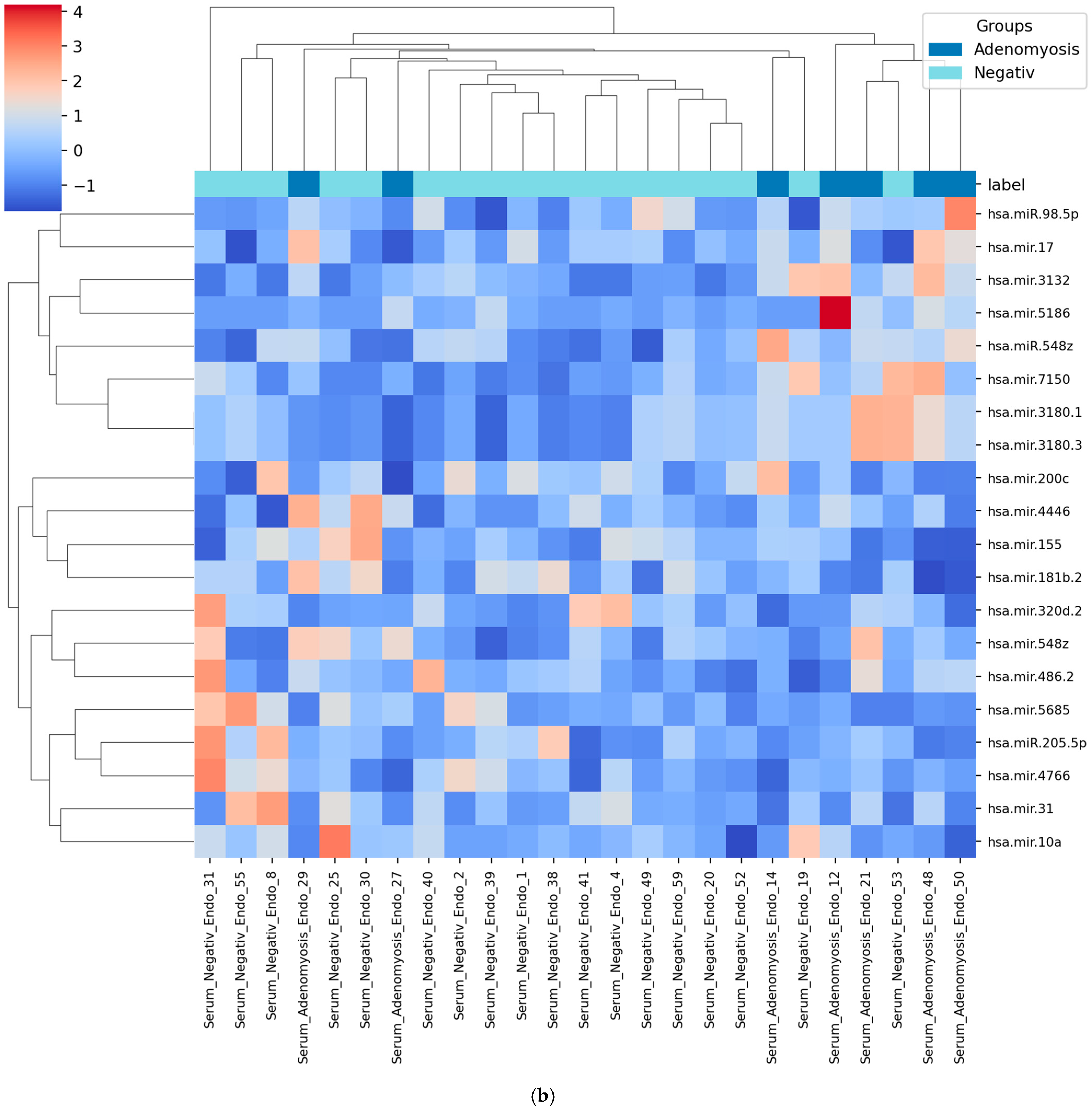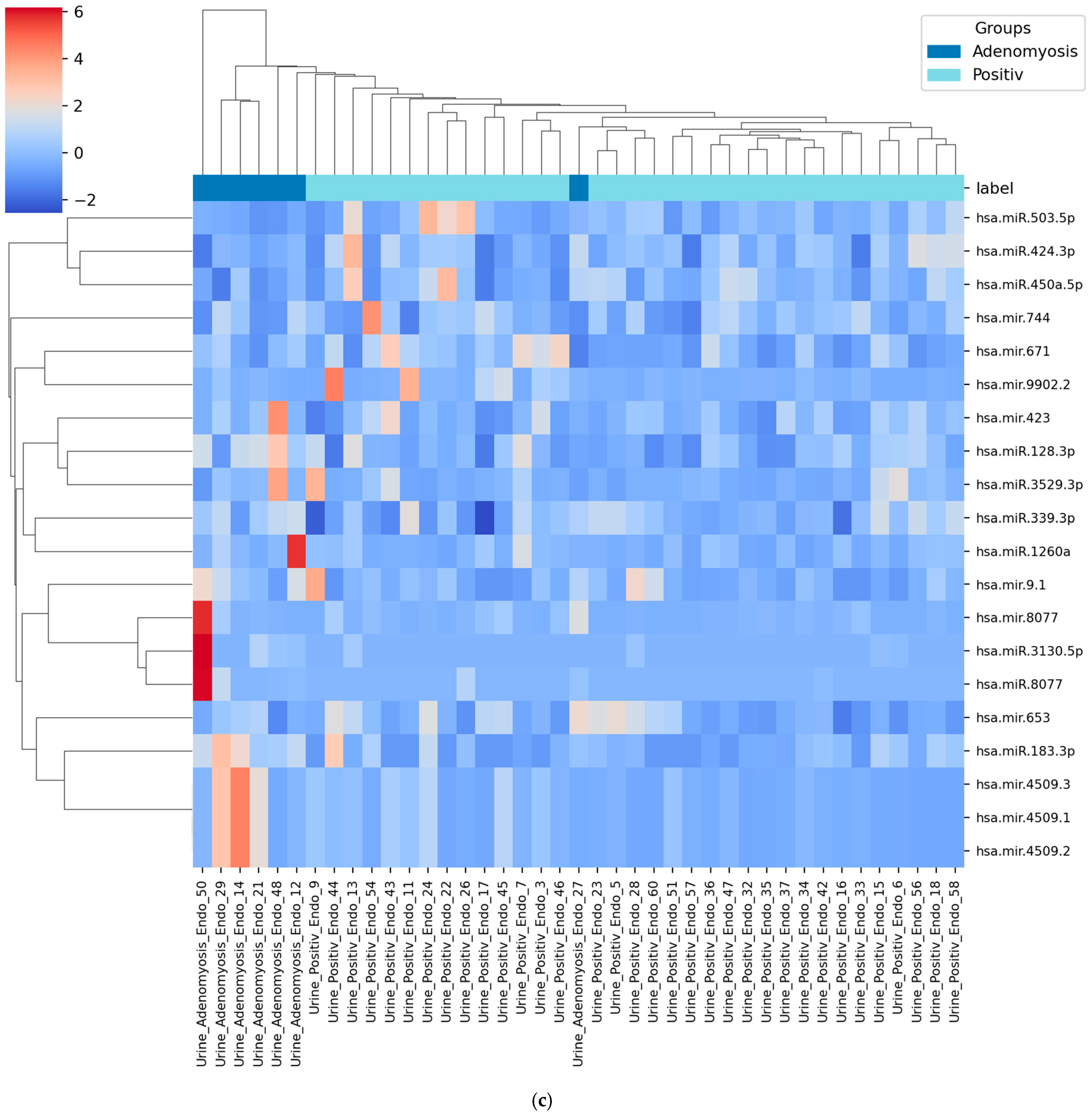 APA StyleKupec, T., Wittenborn, J., Kuo, C.-C., Senger, R., Meyer-Wilmes, P., Najjari, L., Stickeler, E., & Maurer, J. (2025). Urine and Serum miRNA Signatures for the Non-Invasive Diagnosis of Adenomyosis: A Machine Learning-Based Pilot Study. Diagnostics, 15(23), 3012. https://doi.org/10.3390/diagnostics15233012