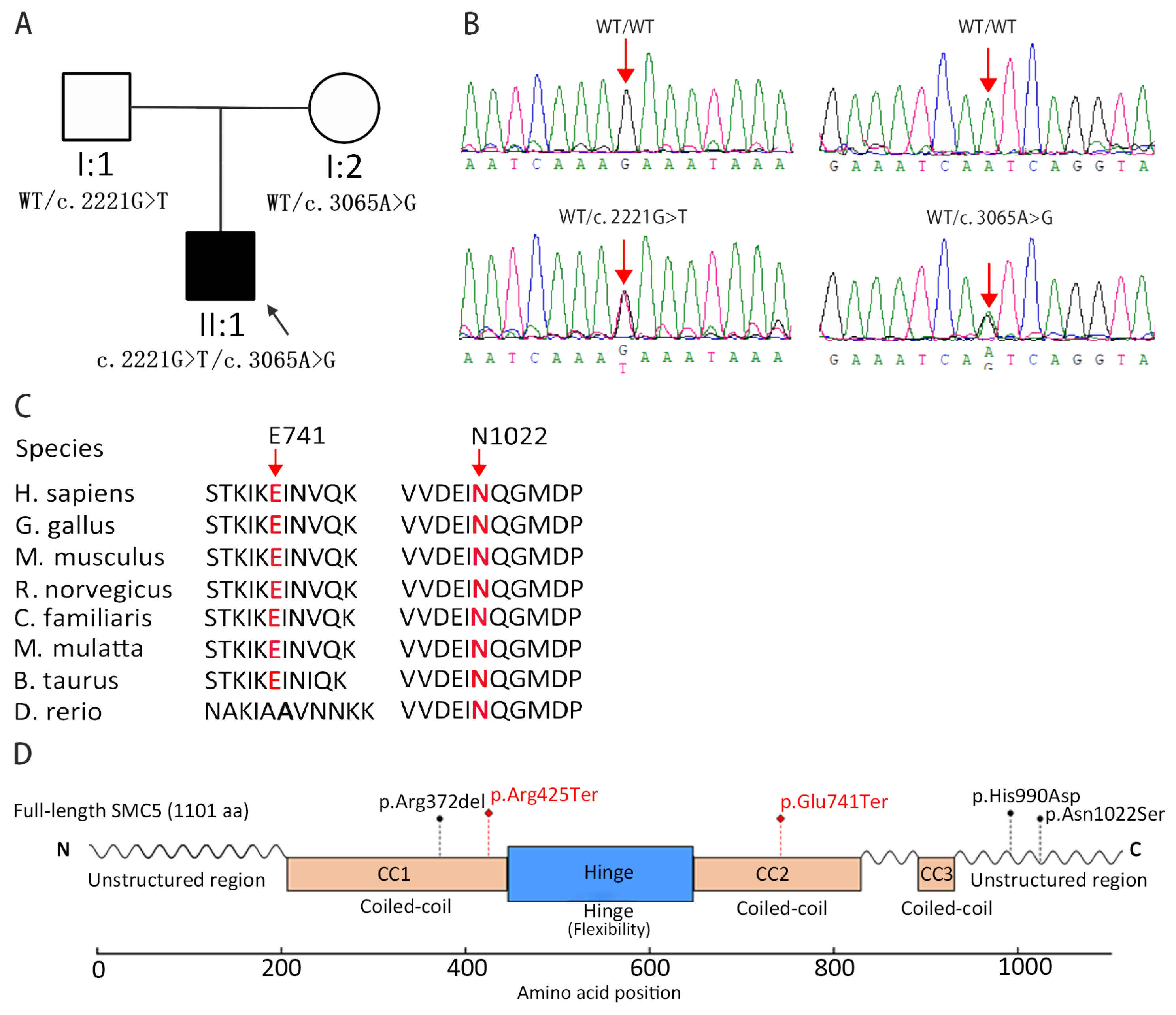 | SMC5 Variants | c.1110_1112del; p.(Arg372del)/ | c.2970C>G; p.(His990Asp)/Homozygous | c.2970C>G; p.(His990Asp)/Homozygous | c.2970C>G; p.(His990Asp)/Homozygous | c.2221G>T; p.(Glu741Ter)/ |