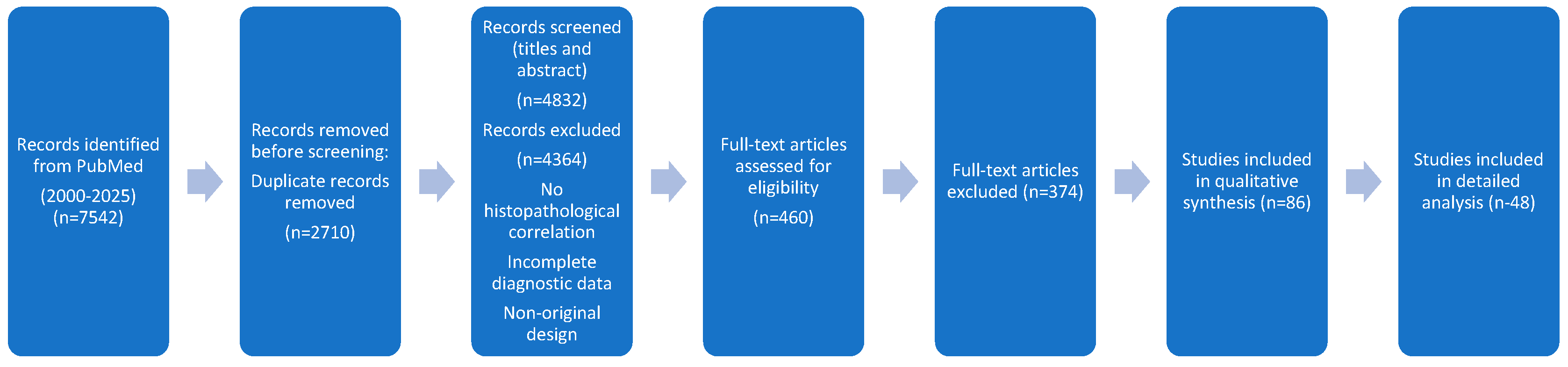 - Study design (S): Prospective and retrospective cohorts, diagnostic accuracy studies, randomized clinical trials, systematic reviews and meta-analyses.