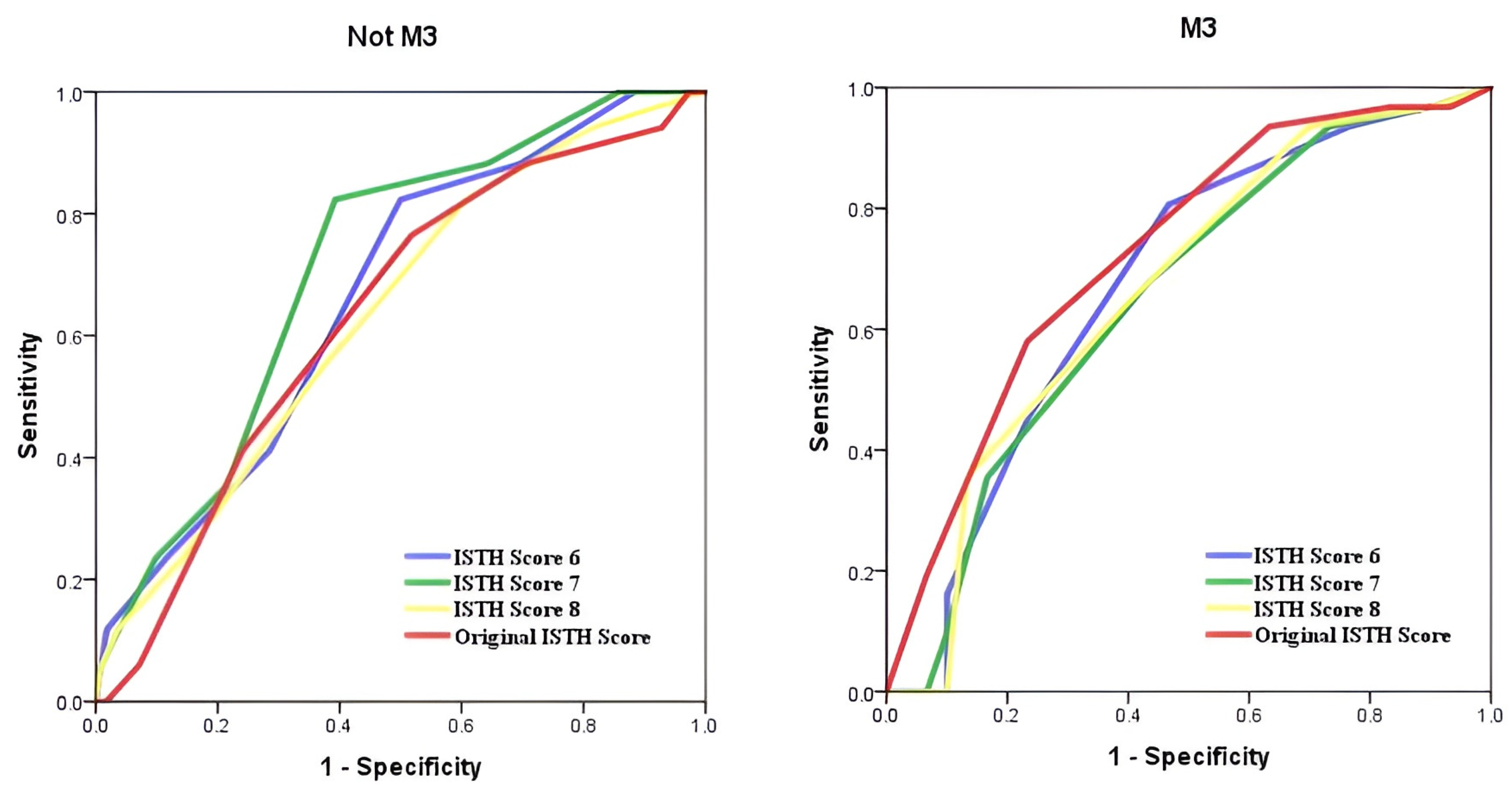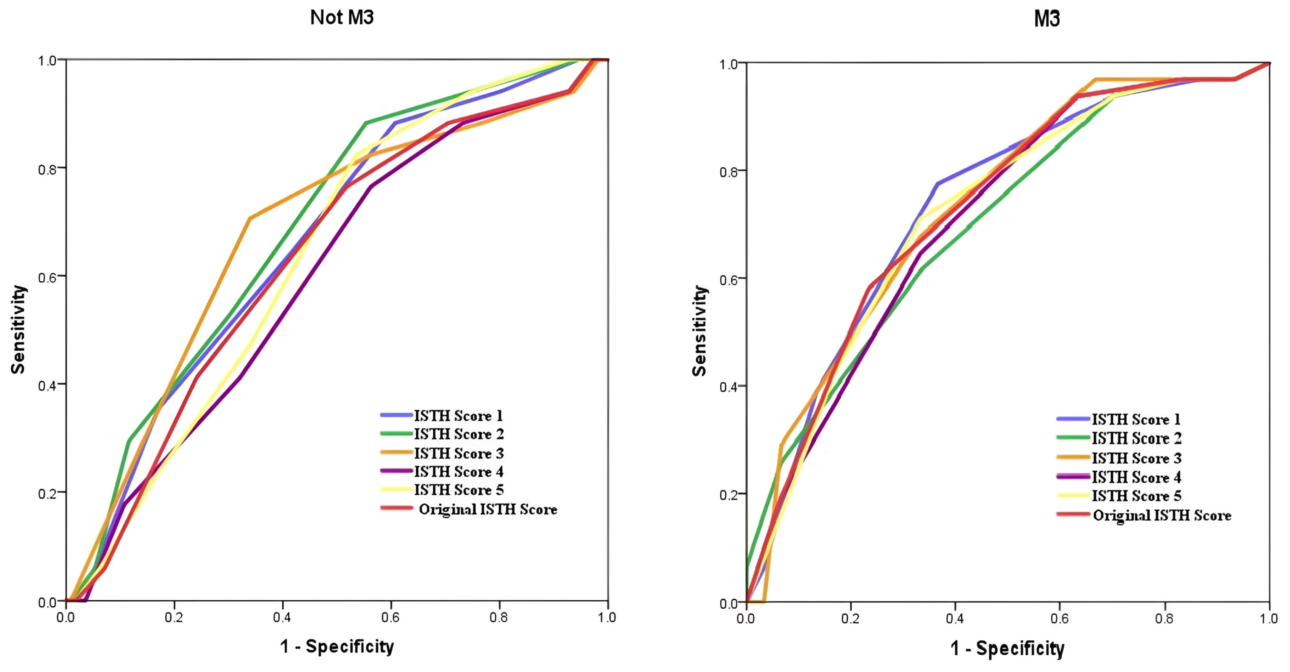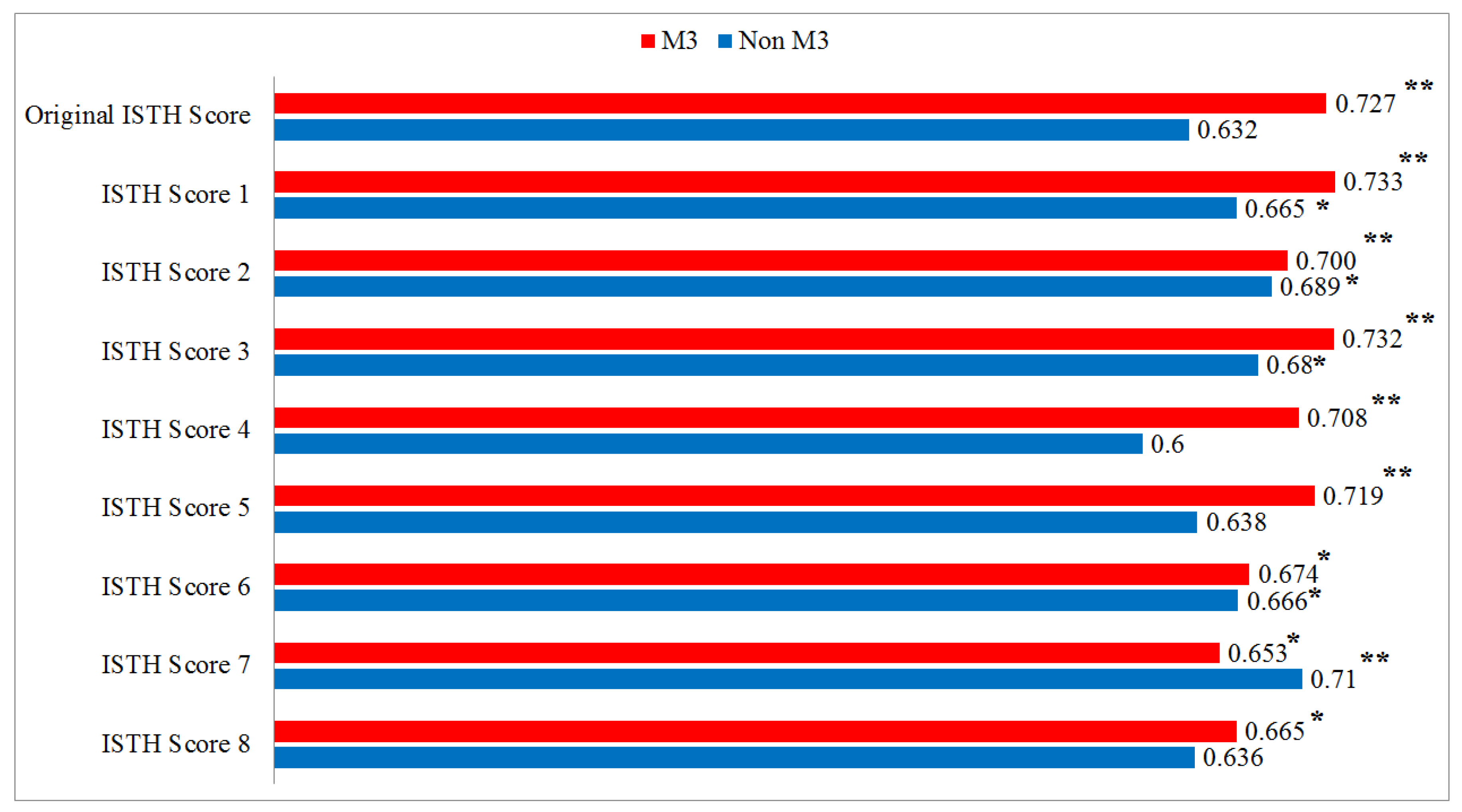 | ISTH Score 3 | Non-M3 | Positive | 12 | 38 | 50 | 70.6 | 66.1 |