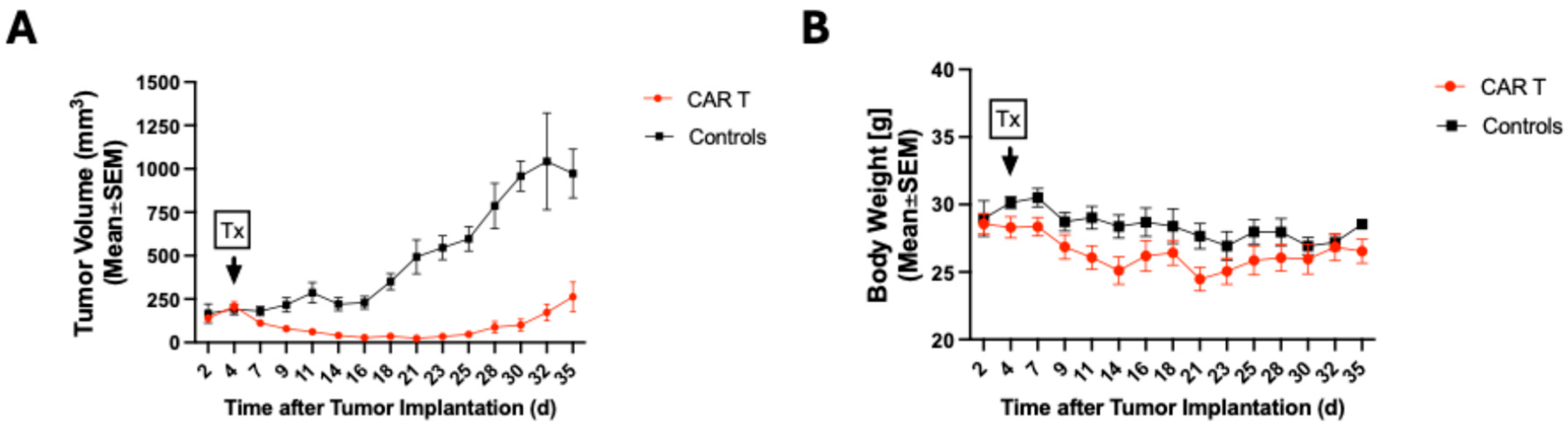 3.1. CAR T-Cell Therapy Delays Tumor Growth of Melanoma Tumors