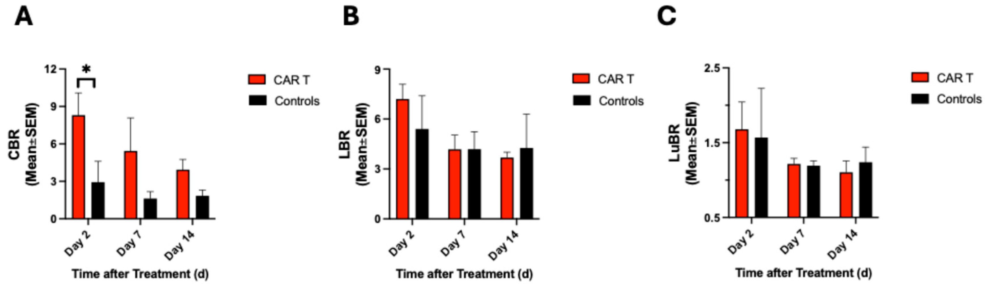 3.5. CAR T-Cell Therapy Is Associated with a Targeted Increase in Inflammatory Mediators, Consistent with Activation of an Antitumor Immune Response