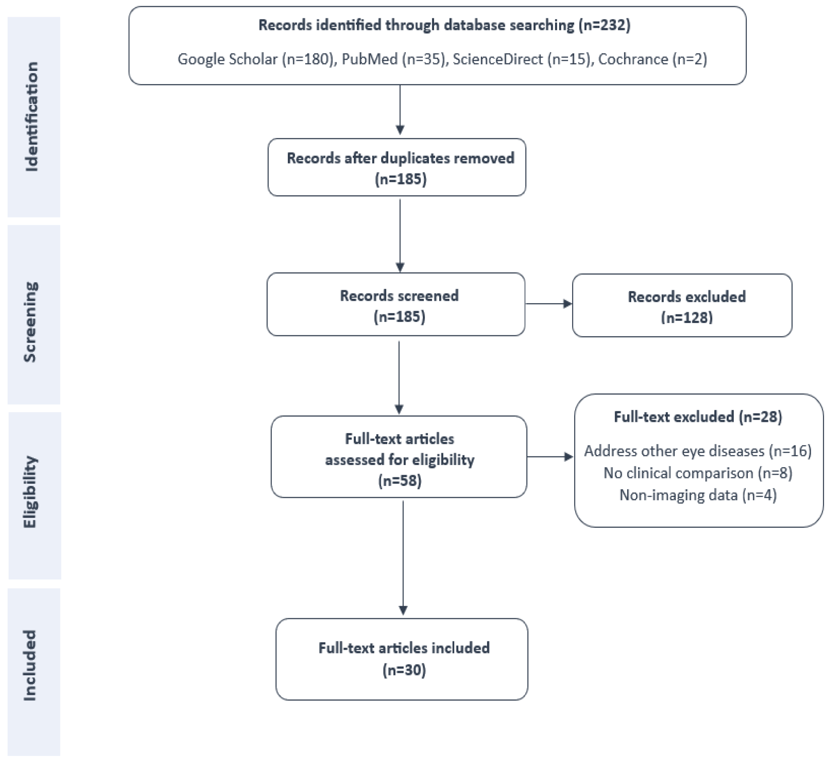 - Studies that relied on non-imaging modalities or questionnaire-based methods for DED diagnosis.