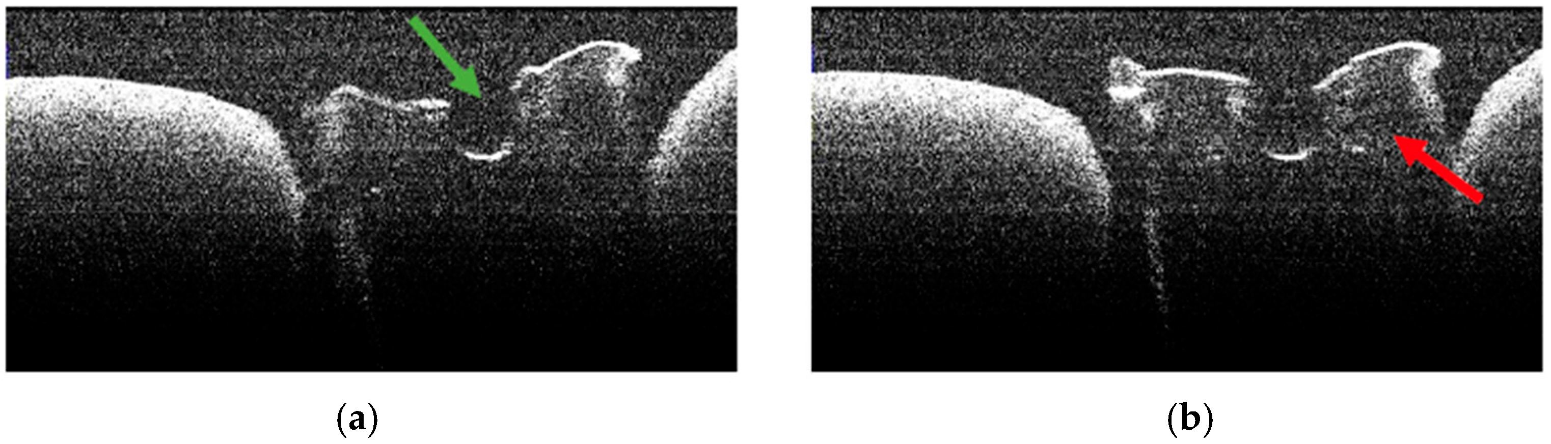 28. Yoshioka, T.; Sakaue, H.; Ishimura, H.; Ebihara, A.; Suda, H.; Sumi, Y. Detection of root surface fractures with swept-source optical coherence tomography (SS-OCT). Photomed. Laser Surg. 2013, 31, 23–27. [Google Scholar] [CrossRef] [PubMed] [PubMed Central]