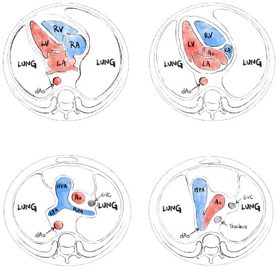 - Moon-Grady, A.J.; Donofrio, M.T.; Gelehrter, S.; Hornberger, L.; Kreeger, J.; Lee, W.; Michelfelder, E.; Morris, S.A.; Peyvandi, S.; Pinto, N.M.; et al. Guidelines and Recommendations for Performance of the Fetal Echocardiogram: An Update from the American Society of Echocardiography. J. Am. Soc. Echocardiogr. 2023, 36, 679–723. [Google Scholar] [CrossRef] [PubMed]