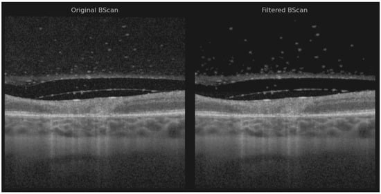 Each OCT volume was manually preprocessed to reduce speckle noise in the vitreous region while preserving small floating artifacts within the vitreous body (Figure 2) [13].
