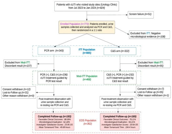 Background: Rapid molecular detection of antimicrobial resistance (AMR) can shorten time to effective therapy in complicated urinary tract infections (cUTI), but the ability of gene presence and quantitative PCR signal (Ct, and ΔCt = Ct_marker − IC_Ct) to predict phenotypic non-susceptibility and clinical outcomes requires rigorous evaluation. We analyzed marker-level concordance, Ct→MIC relationships, and the clinical impact pathway in the randomized NCT06996301 trial.