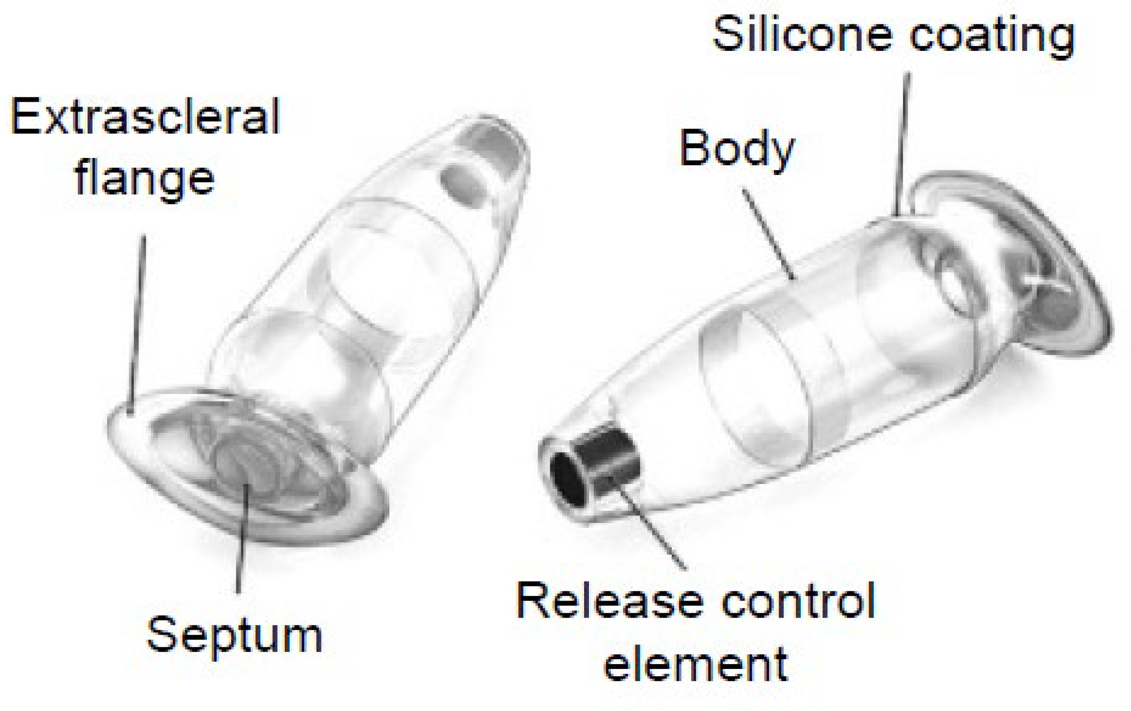 9] designed to alleviate the need for frequent intravitreal injections, thereby reducing the treatment burden for patients with retinal disease. The PDP with ranibizumab (PDS), an anti–vascular endothelial growth factor, is the first iteration of the PDP and approved by the U.S. Food and Drug Administration for neovascular age-related macular degeneration (nAMD), diabetic macular edema (DME), and diabetic retinopathy (DR) [