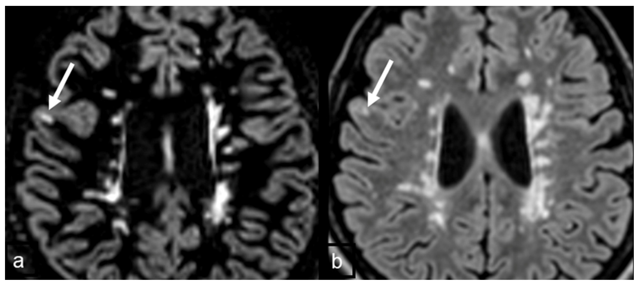 - Lespagnol, M.; Massire, A.; Megdiche, I.; Lespagnol, F.; Brugières, P.; Créange, A.; Stemmer, A.; Bapst, B. Improved detection of juxtacortical lesions using highly accelerated double inversion-recovery MRI in patients with multiple sclerosis. Diagn. Interv. Imaging 2023, 104, 401–409. [Google Scholar] [CrossRef]