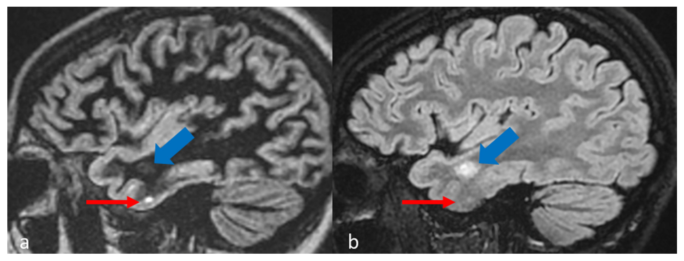- Kolber, P.; Montag, S.; Fleischer, V.; Luessi, F.; Wilting, J.; Gawehn, J.; Gröger, A.; Zipp, F. Identification of cortical lesions using DIR and FLAIR in early stages of multiple sclerosis. J. Neurol. 2015, 262, 1473–1482. [Google Scholar] [CrossRef] [PubMed]