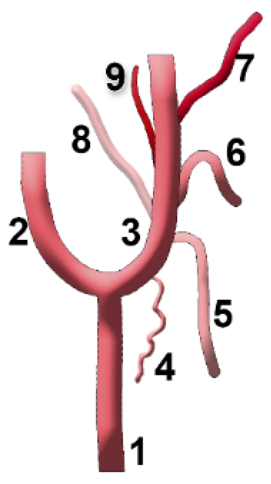 3.5. Framing of the Ascending Pharyngeal Artery in the Sequence of Origin of the First Branches of the External Carotid Artery—The S-Types
