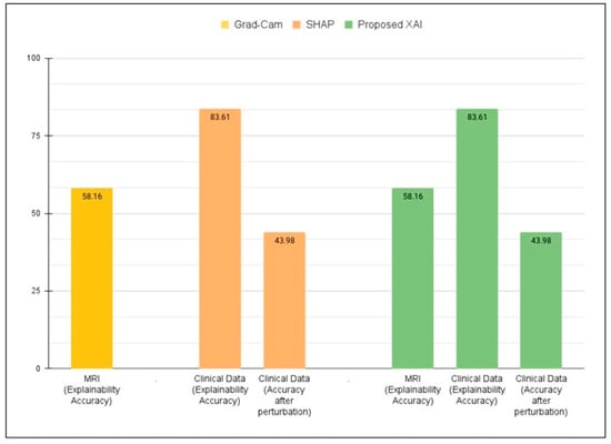 In another study [27] the Grad-CAM-based XAI framework was applied to MRI images. A comprehensive evaluation was conducted on CNN models trained on real and synthetic MRI images, with gradients extracted from the final convolutional layer. However, the resulting explanations were unclear or difficult to interpret effectively.