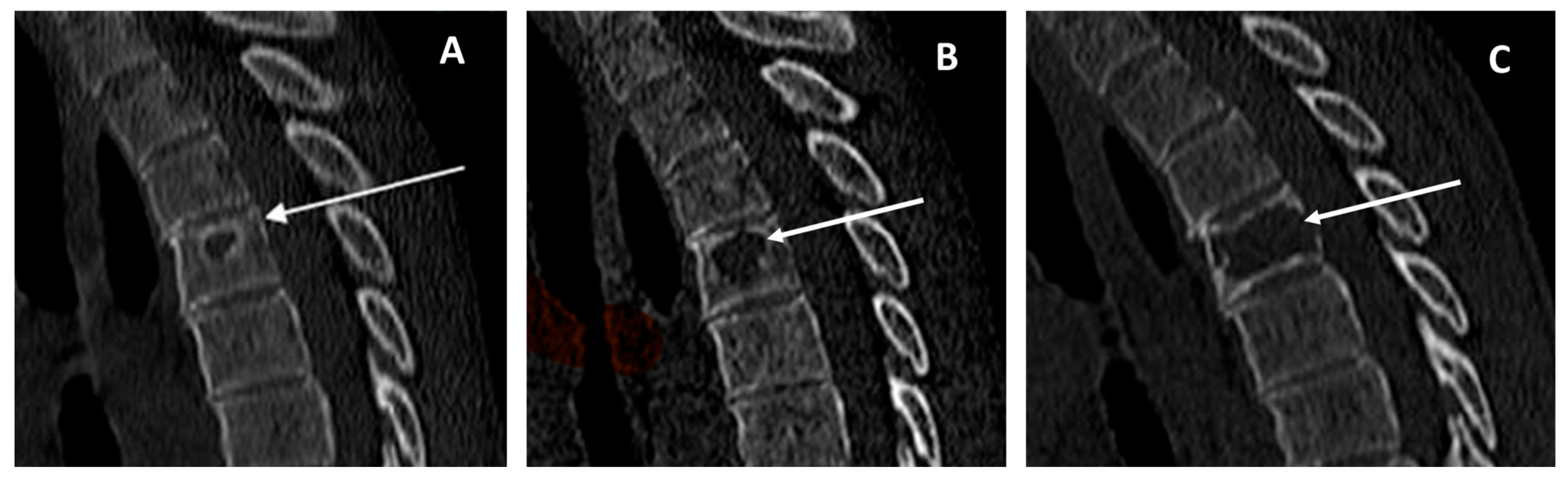 - CT studies were performed on different equipment and completed with bi-dimensional reconstruction (sagittal, coronal). Post-contrast scans were not consistently performed.
