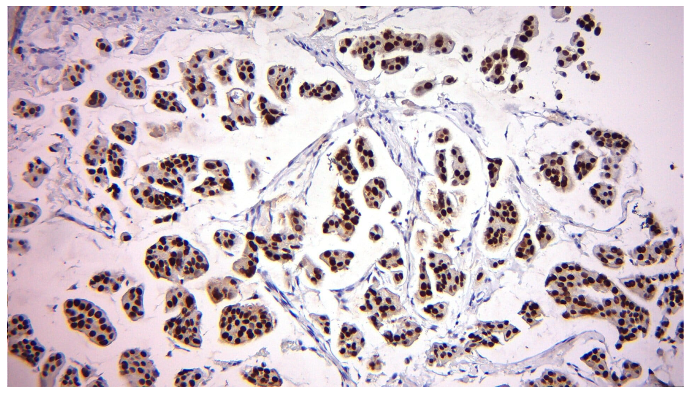- Tu, T.A.; Tin, N.V.; Rhodes, A.; Anh, D.B.Q.; Dao, L.T.H.; Linh, N.T.T.; Nhu, D.T.K.; Nhung, N.T.H.; Cam, L.T.; Hanh, N.T.M.; et al. Reproducibility of Immunohistochemical Testing of Estrogen Receptors, Progesterone Receptors, Human Epidermal Growth Factor Receptor-2 (HER2) and Ki-67 in Vietnam. Br. J. Biomed. Sci. 2025, 82, 15455. [Google Scholar] [CrossRef]