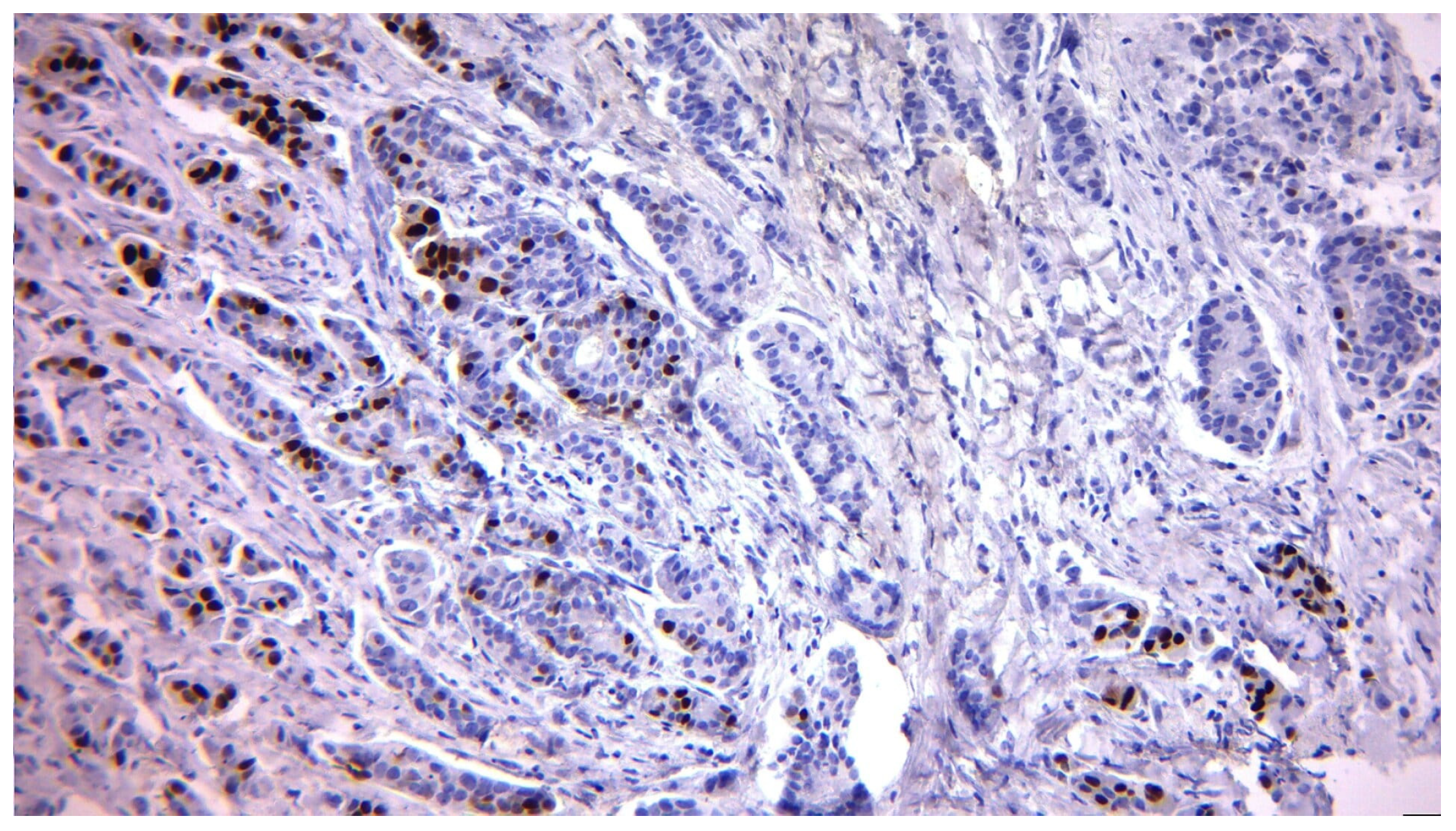 - Hacking, S.M.; Wang, Y. Practical Issues of Ki-67 Evaluation in Breast Cancer Clinical Practice. J. Clin. Transl. Pathol. 2022, 2, 53–56. [Google Scholar] [CrossRef]