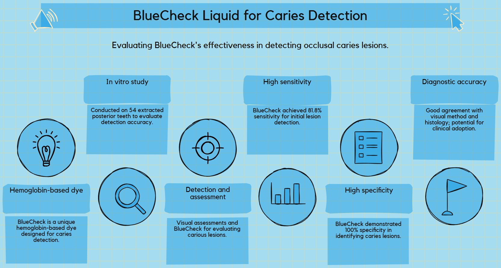 One in vitro study has examined the use of BlueCheck for detecting dentin caries [