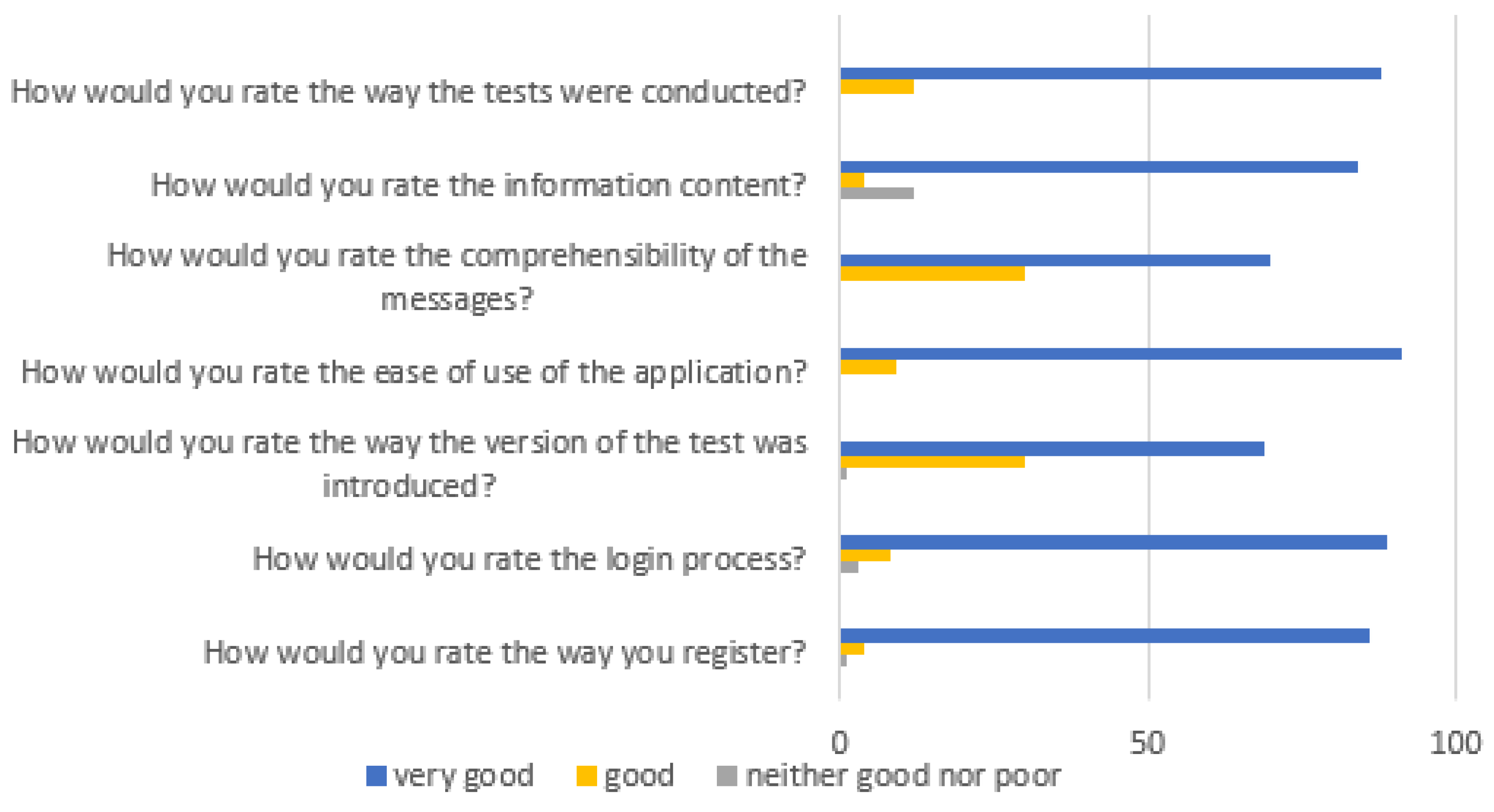STTs were conducted on 420 people, of whom 404 (96%) performed the test correctly. In terms of age groups, the procedure was performed correctly by at least 90% of the volunteers in each group. Older people, i.e., over 70 years of age, performed STT slightly slower, reflecting less experience with electronic devices. A bug with some operating systems was identified in which the graphical interface did not display as intended; appropriate fixes were made.