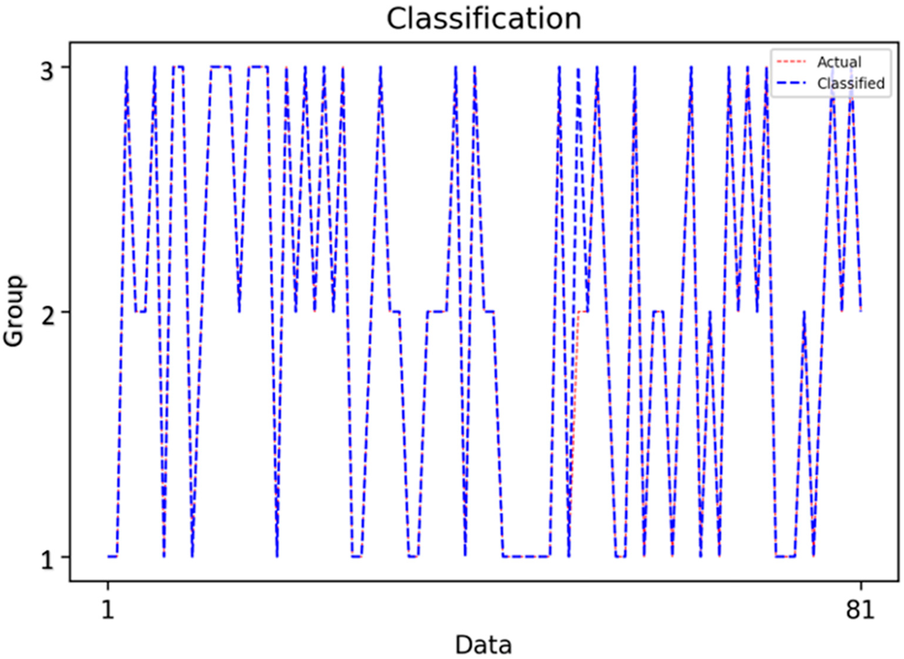 - Group 1 (interproximal caries): All evaluation measures (Precision, Recall, F1-Score, Sensitivity, Specificity) reached 1.000, indicating perfect classification.