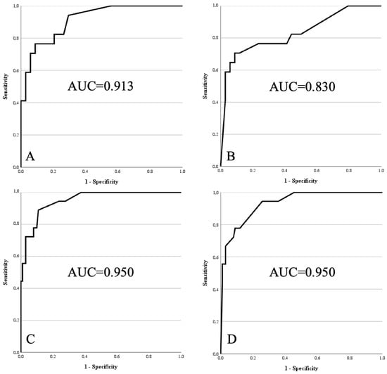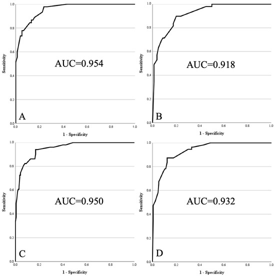 - Model 4 resulted in an AUC of 0.932 (95% CI 0.899–0.966; Chi2 = 125.980; df = 5; p < 0.001; Nagelkerke R2 = 0.639; Hosmer–Lemeshow p = 0.919).