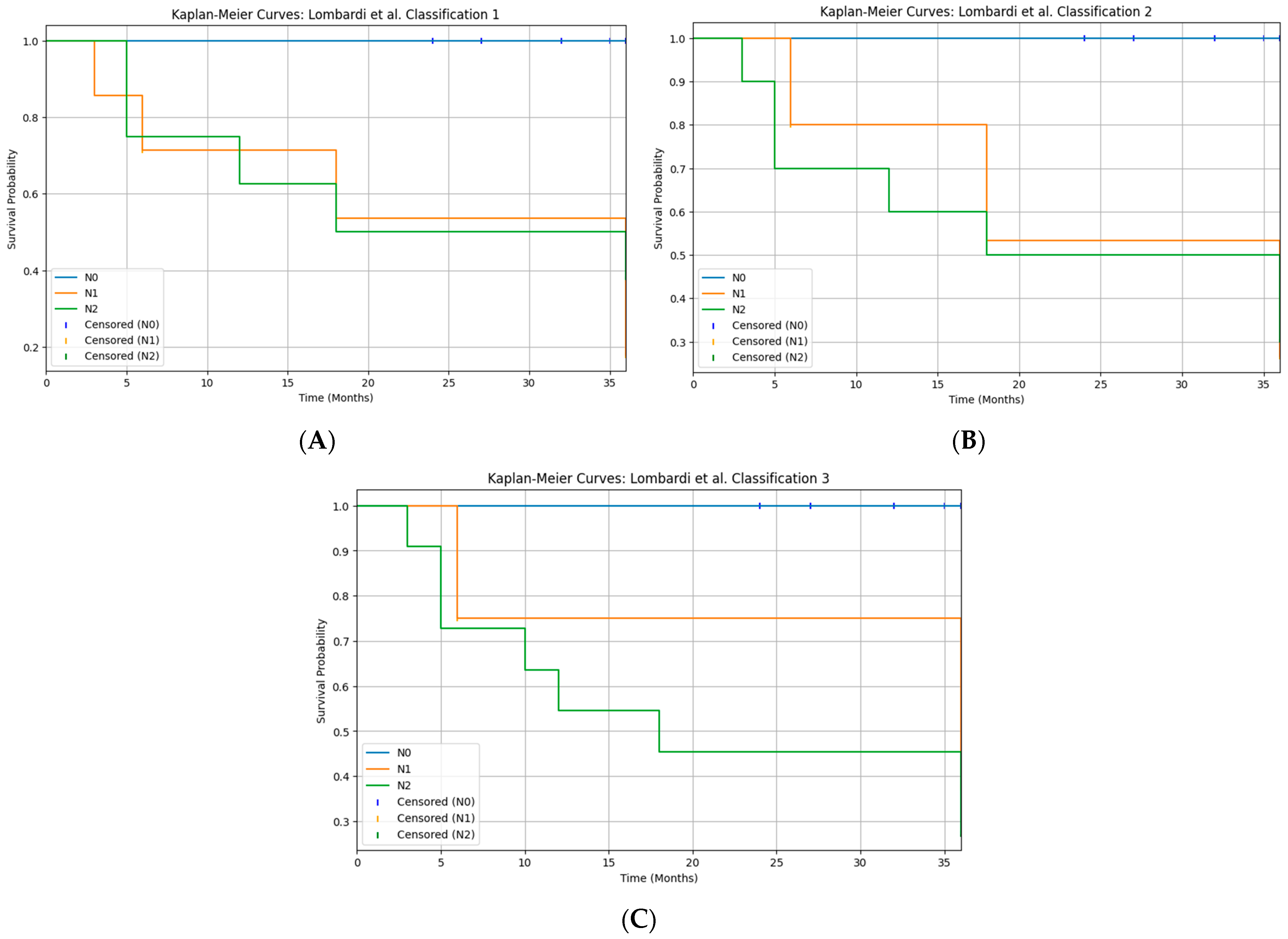 - Lombardi, D.; Tomasoni, M.; Missale, F.; Smeele, L.E.; Van Lierde, C.; Van Eecke, M.; Pellini, R.; Mazzola, F.; Ravanelli, M.; Farina, D.; et al. Nodal status in major salivary gland cancer: External validation of a novel N-classification. Eur. J. Surg. Oncol. 2025, 51, 110006. [Google Scholar] [CrossRef]