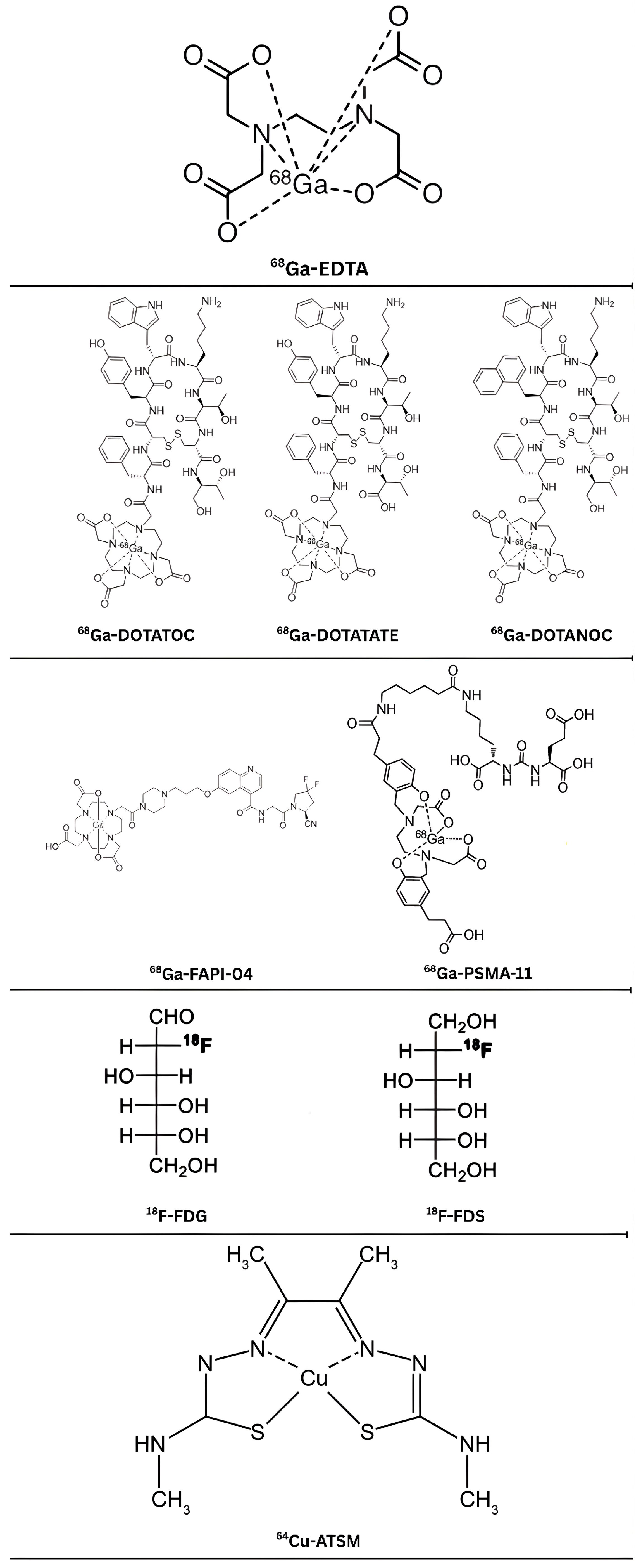 | 68Ga-DOTA | Gallium-68 1,4,7,10-tetraazacyclododecane-1,4,7,10-tetraacetic acid |