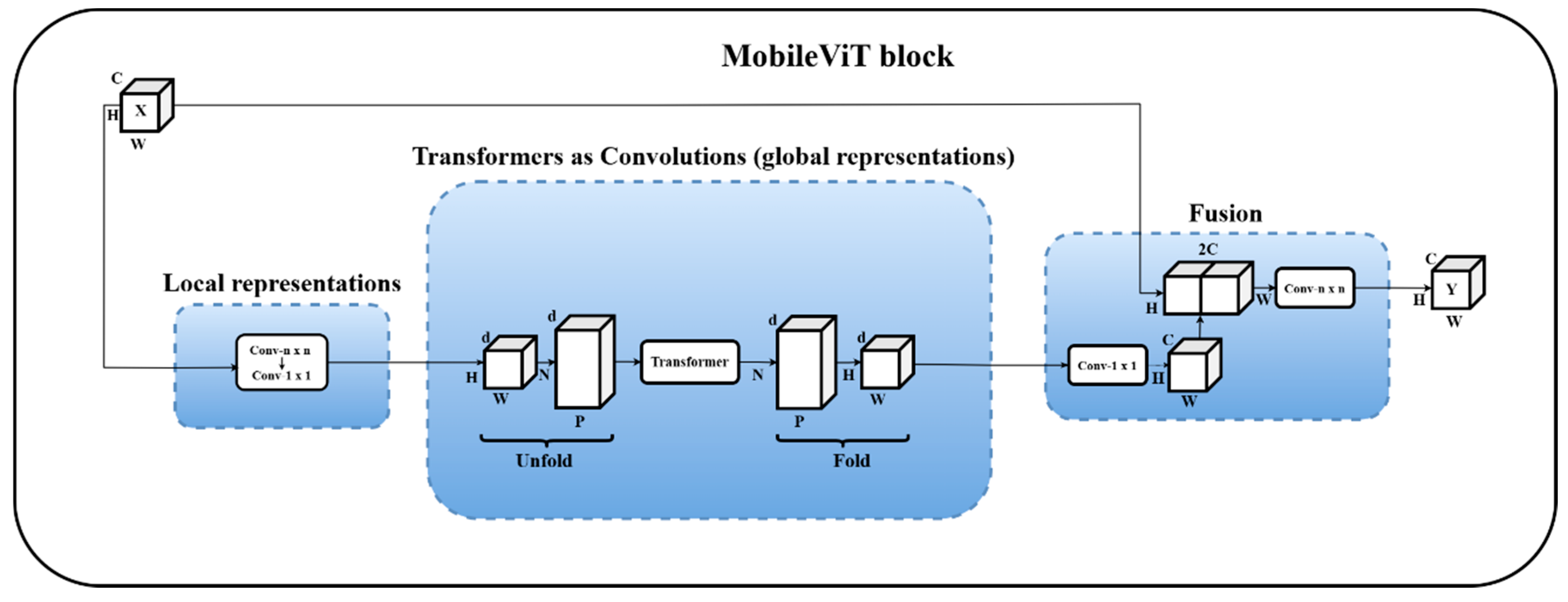 - MobileViT Path: MobileViT leverages the inductive bias of CNNs combined with the long-range feature modeling capacity of transformers. This enables the network to efficiently capture fine-grained details as well as coarse contextual clues from the input images.