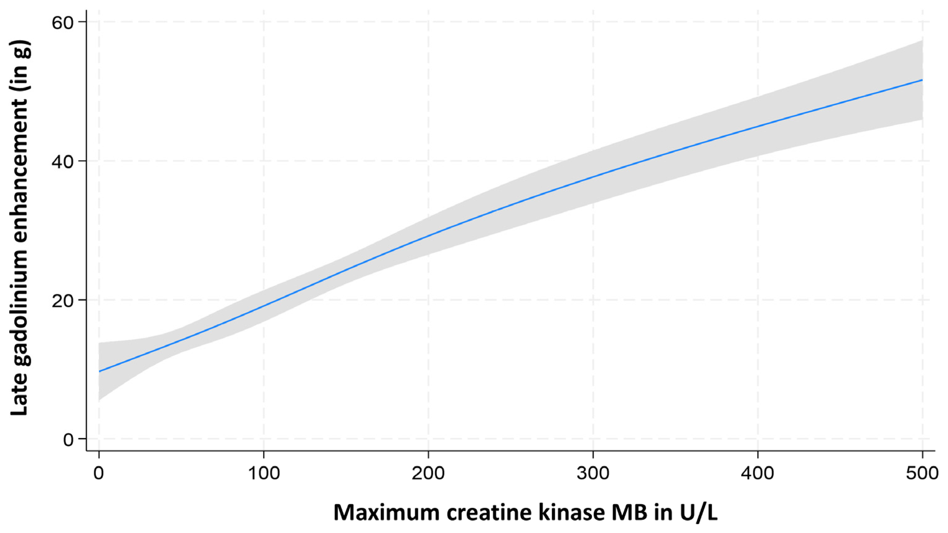 - LGE mass of ≥53 g was strongly associated with elevated risk of all-cause mortality, and a peak hs-cTnT level of ≥7270 ng/L accurately predicted this extent of myocardial damage.