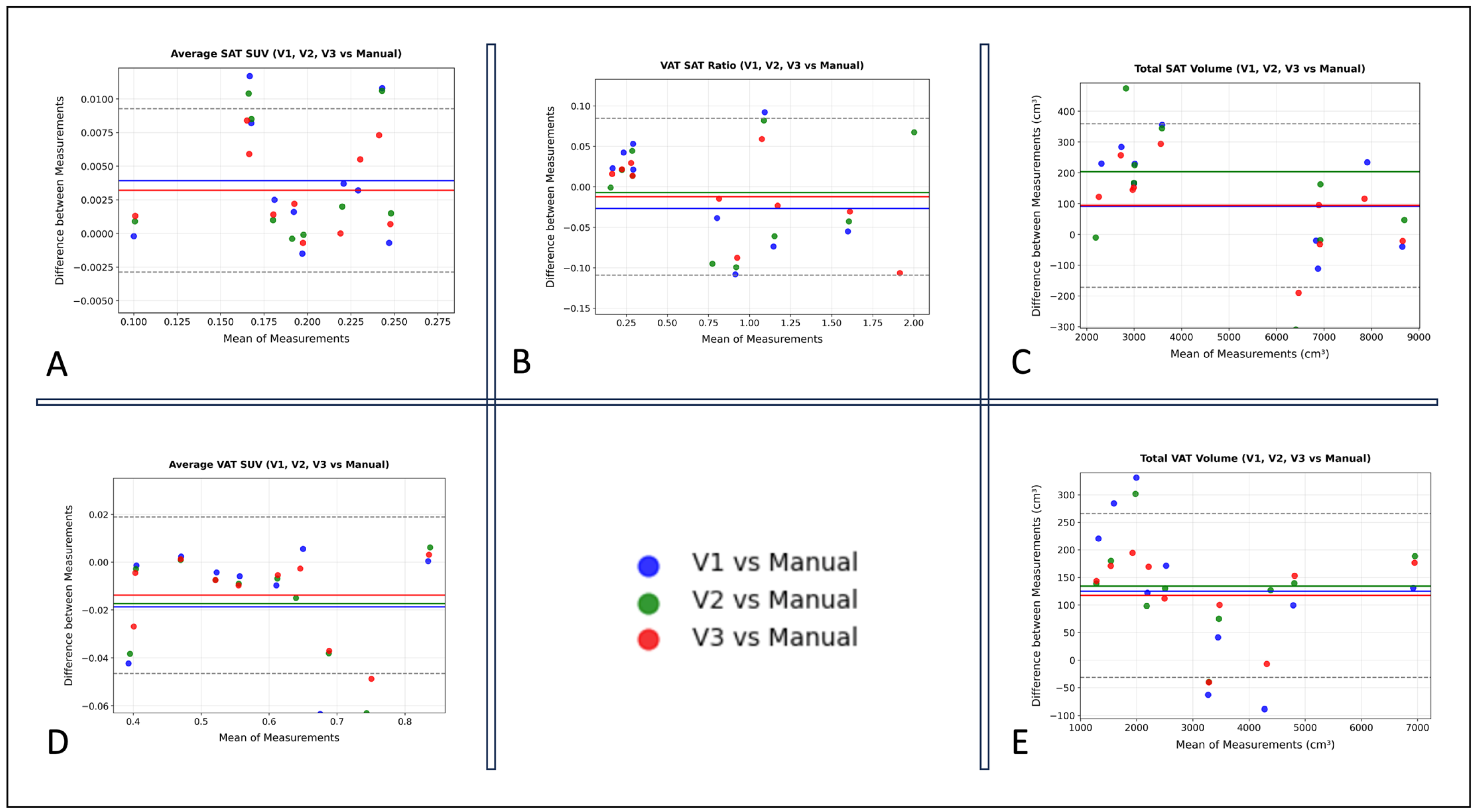 | VAT Volume (cm3) | V1 | 125 ± 129 | (−128, 379) |