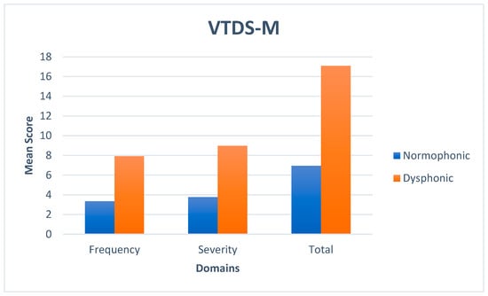 Mean scores of VTDS-M for normophonic and dysphonic groups.