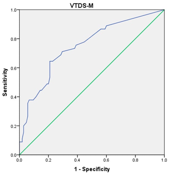 The ROC analysis was carried out to measure the optimal threshold for VTDS-M using the Youden index, which ranges from 0 to 1 in which 1 signifies perfect diagnostic accuracy, while a score of 0 indicates the test’s ineffectiveness. The Youden index is calculated by evaluating the sensitivity and specificity across all potential cut-off points [31]. The results underscore the efficacy of the VTDS-M as a dependable and precise instrument for evaluating vocal discomfort. The established cut-off value of 11.5 serves as an accurate criterion for differentiating persons with vocal discomfort from those without, with scores beyond this threshold signifying the existence of vocal discomfort. The AROC value of 0.749, with a significant p-value below 0.001, sensitivity of 71.1%, and specificity of 70.5%, indicates strong overall accuracy in distinguishing between those with and without voice pain. However, the determined cut-off value of 11.5 is significantly lower than the cut-off scores reported by other studies, specifically 26 for VTDS—Arabic [10] and 25.75 for VTDS—German [12]. This may be attributed to the selection of a population in the current study that exclusively comprised patients with milder dysphonia. The diagnostic accuracy (sensitivity and specificity) of VTDS-M may be inferior to other studies, potentially due to the milder dysphonic group and the subtle distinctions between certain items, which made it challenging for participants to differentiate, such as sore versus aching, tickling, etc. Future research is necessary on a large population with moderate and severe dysphonia to assess the diagnosis accuracy for severe cases.