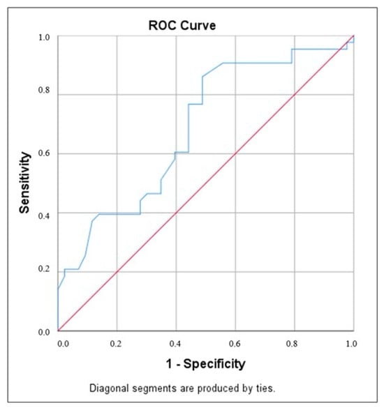 In our study, a cut-off value of 0.345 for the correlation between the thymus/thorax ratio and the presence of hypothyroidism demonstrated a sensitivity of 60.5% and a specificity of 60.5%. The area under the ROC curve was 0.684, with a standard error of 5.8%. A statistically significant relationship was observed between the thymus/thorax ratio cut-off value of 0.345 and the presence of hypothyroidism (p = 0.003) (Table 3, Figure 3).