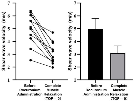 p < 0.0001). The SWV in all participants decreased during complete muscle relaxation compared with before rocuronium administration (