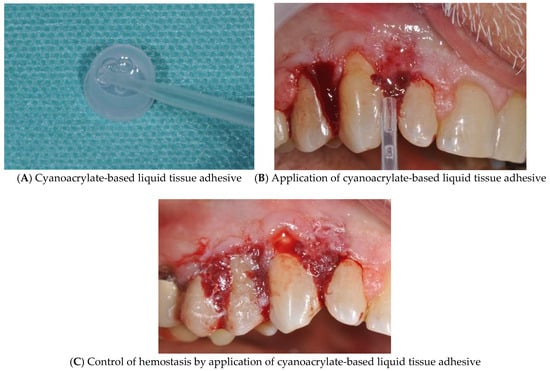 (A–C) Control of hemostasis a cyanoacrylate-based liquid tissue adhesive.