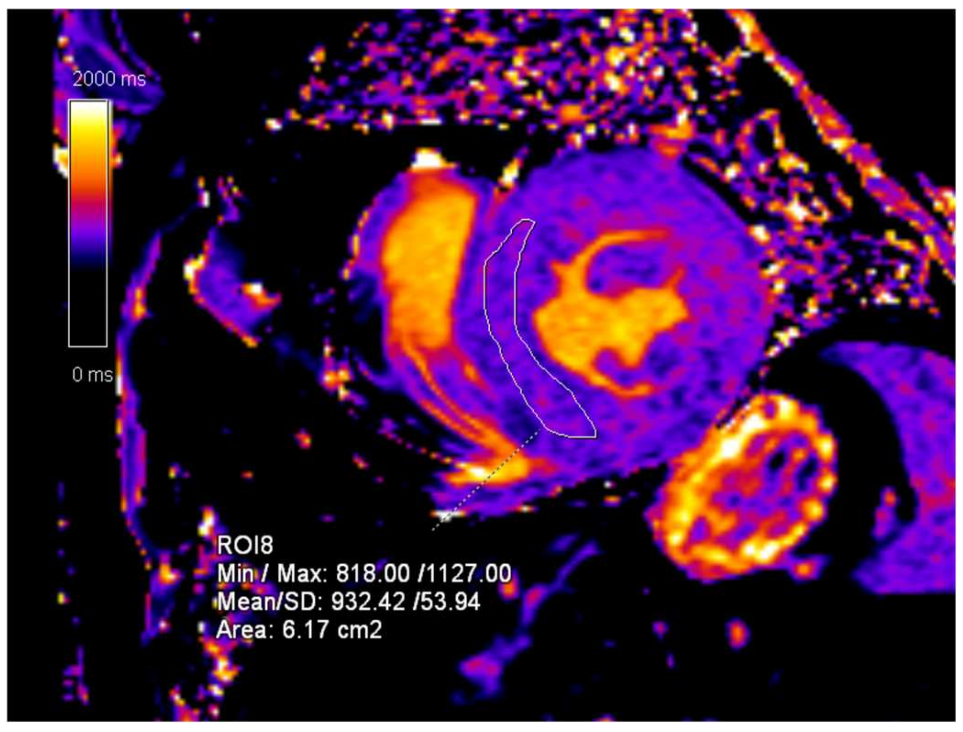 - Nickander, J.; Cole, B.; Nordin, S.; Vijapurapu, R.; Steeds, R.P.; Moon, J.C.; Kellman, P.; Ugander, M.; Kozor, R. Increased cardiac involvement in Fabry disease using blood-corrected native T1 mapping. Sci. Rep. 2023, 13, 4420. [Google Scholar] [CrossRef]