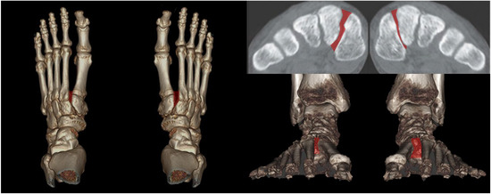 - Essa, A.; Levi, A.; Ron, T.G.; Ner, E.B.; Finestone, A.S.; Tamir, E. The role of three dimension computed tomography in Lisfranc injury diagnosis. Injury 2022, 53, 3530–3534. [Google Scholar] [CrossRef]