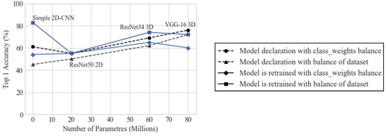 The best results were retrieved by the simple custom 2D-CNN, but, in general, from Figure 3, it is clear that the model that retrieved the most consistent outcomes is custom 3D VGG-16 model, being the one that has more trainable parameters.