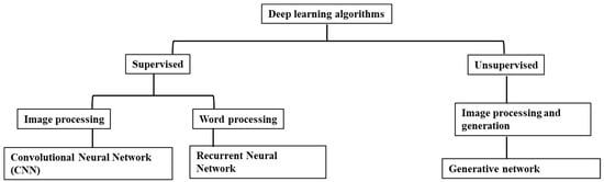 Deep learning algorithm and subcategories.