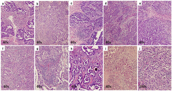 Figure 2. Histopathological images of 10 HGSOCs with IR presence (IR subtype). The 10 cases of high-grade serous ovarian carcinoma with abundant tumor-infiltrating lymphocytes in the suboptimal surgery group (aj).
