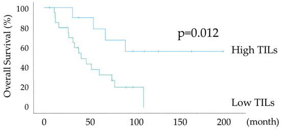 3.2. Kaplan–Meier Survival Curve and Analysis (High TILs Versus Low TILs)