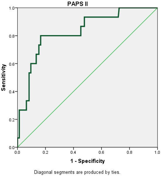Receiver operating characteristic (ROC) curve for PAPS II.