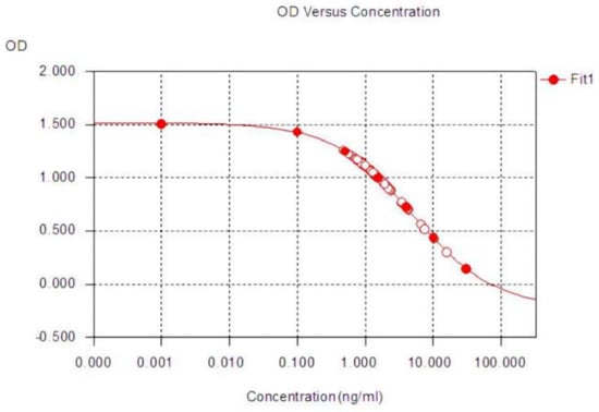 - Plate reading: the absorbance of each well was measured using a DYNEX DSX Automated ELISA System spectrophotometer, Dynex Technologies, Chantilly, VA, USA at the specified wavelength (450 nm). The cortisol concentration in the sample was determined by measuring the absorbance of each well and interpolating the values on the calibration curve, with cortisol concentration being inversely proportional to the color intensity in the well.