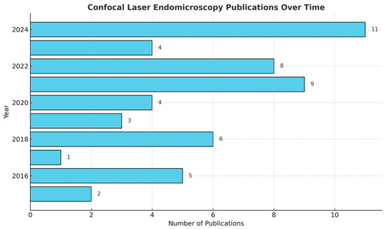 - Buchner, A.M. Confocal Laser Endomicroscopy in the Evaluation of Inflammatory Bowel Disease. Inflamm. Bowel Dis. 2019, 25, 1302–1312. [Google Scholar] [CrossRef] [PubMed]