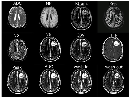In the MRI of gliomas, perfusion-weighted imaging (PWI) is commonly used [8,9,10,11]. Dynamic contrast-enhanced (DCE) MRI is a PWI technique that provides reliable quantification of the blood–brain barrier and the microvascular permeability with high spatial resolution [8,12].