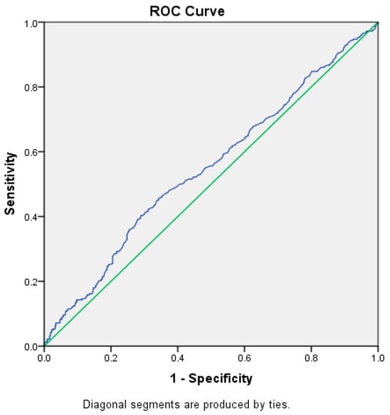 - With an AUC of 0.549 (95% CI: 0.51–0.59), admission blood glucose shows a statistically significant association with severe respiratory insufficiency (p = 0.01). This result confirms that admission glucose levels are a relevant parameter for identifying patients with more severe forms of respiratory failure.