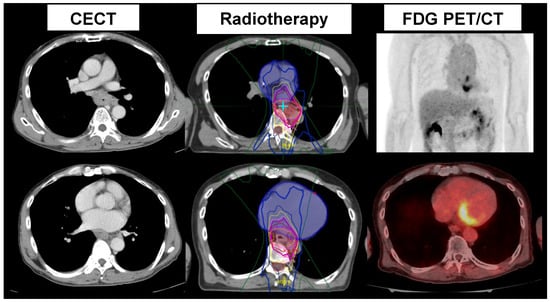 Secondary large vessel vasculitis should also be considered. Extensive chemotherapy for cancer treatment, particularly with human epidermal growth factor receptor 2 (HER2) inhibitors and immune checkpoint inhibitors, may cause severe cardiovascular inflammation [67,68]. In addition, radiation therapy for esophageal cancer or breast cancer may possibly cause cardiovascular dysfunction [67,68]. Suitable therapies have significantly improved both survival and long-term outcomes in many cancer entities. On the other hand, such improvements in cancer outcomes are often accompanied by increasingly relevant therapy-related cardiovascular toxicity. Molecular imaging using MRI and nuclear imaging are used for assessing tissue function before and after cancer therapy from molecular perspectives. FDG PET is most commonly applied for the detection and extension of cancers, and it has an important role in providing suitable cancer management and treatment monitoring [71,72,73,74]. Also, FDG PET is valuable for detecting active cardiovascular inflammation, particularly in the early stages of cancer therapy, and monitoring toxic effects [71,72]. Arterial thrombosis and myocardial infarction may sometimes be observed as cardiovascular toxicities after cancer therapy. FDG serves as a sensitive indicator of the metabolic shift (from fatty acid utilization to glucose utilization) in the myocardium, which occurs in the early stages of coronary artery disease [71].