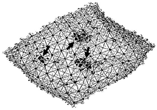 In the early stages of pulmonary emphysema, localized damage occurs to the elastic fiber network of the lungs, resulting in only minor changes to the lung structure. However, as this damage progresses, it disrupts the normal distribution of mechanical forces, leading to the rupture of alveolar walls [11,12]. This process significantly reduces the lung’s surface area and impairs effective gas exchange. Percolation theory, which examines the flow of fluids through interconnected pathways, can be used to model these structural changes and evaluate their potential effects at various levels of scale [13].
