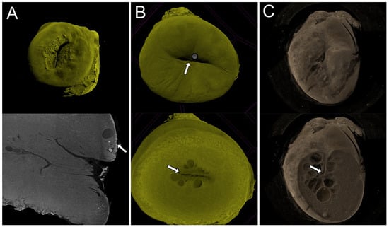 - Lombardi, C.M.; Zambelli, V.; Botta, G.; Moltrasio, F.; Cattoretti, G.; Lucchini, V.; Fesslova, V.; Cuttin, M.S. Postmortem microcomputed tomography (micro-CT) of small fetuses and hearts. Ultrasound Obstet. Gynecol. 2014, 44, 600–609. [Google Scholar] [CrossRef]
