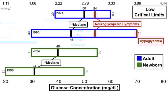 - Hart, S.A.; Pogue, E.; Wiencek, J.R.; Nelson, S.D.; Schell, R.F. Standardizing Hypoglycemic Critical Values Across United States Hospitals. Am. J. Clin. Pathol. 2024, 162, S1–S187. [Google Scholar] [CrossRef]