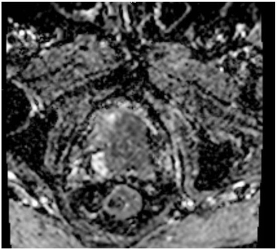 MR—ADC map. On the corresponding ADC map, the lesion appears hypointense.