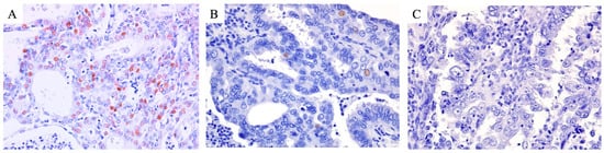 Abnormal p53 expression was defined by either strong nuclear staining in at least 80% of the tumor cell nuclei or the complete absence of nuclear staining when the “wild-type” pattern was present, characterized by a range from a few positive cells to nearly all the cells being stained, albeit with a varying intensity [11,12]. The cytoplasmic pattern of p53 expression was characterized by predominant cytoplasmic staining without strong nuclear staining in more than 80% of tumor cell nuclei [12,20]. The assessment of immunohistochemical p53 expression was carried out by a pathologist and a physician specializing in gynecological oncology, both of whom were blinded to the clinicopathological details of the patients [11]. Regarding the L1CAM expression, such expression was scored according to the percentage of positivity in tumor cells (score 0 = 0%, score 1 = 1%–10%, score 2 =>10%–50%, and score 3 =>50%). If 10% or more of the tumor cells showed L1CAM staining, the cancer was defined as positive [21,22]. Immunohistochemical staining for p21 was scored as absent, focal, or diffuse. We defined focal and diffuse cases as those with positivity for p21 immunohistochemical expression [23]. The expression of PMS2 or MSH6 was considered “lost” when there was a complete absence of nuclear staining in tumor cells, while the normal surrounding cells consistently exhibited preserved nuclear staining.